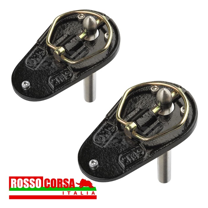 Pair of M10 bonnet pins in stainless steel, cast aluminum base and steel paddle pins