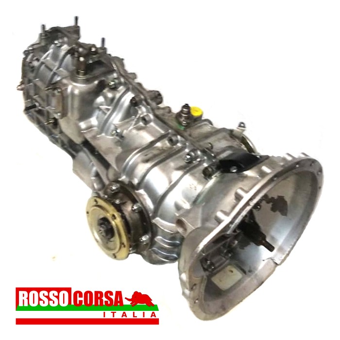 Reconditioned gearbox for Lancia Fulvia Coupé 2nd series, 5-speed. Equipped with large output driveshaft–flange fittings for 2nd-series–type inner CV joints.