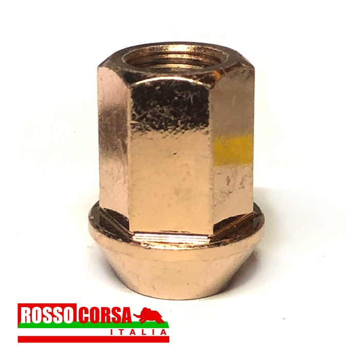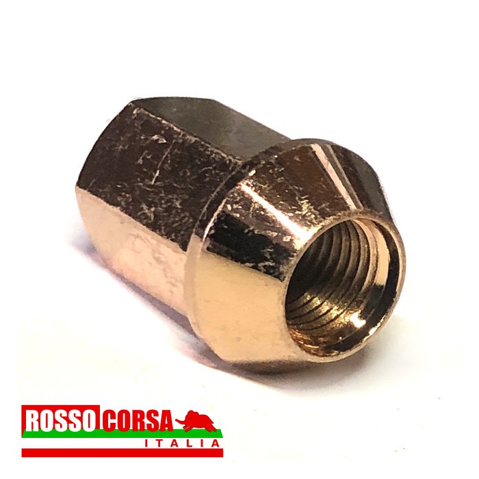 Wheel nut in copper-plated steel, wrench 19, conical support seat. To mount Cromodora replica rims on Lancia Fulvia all models with columms