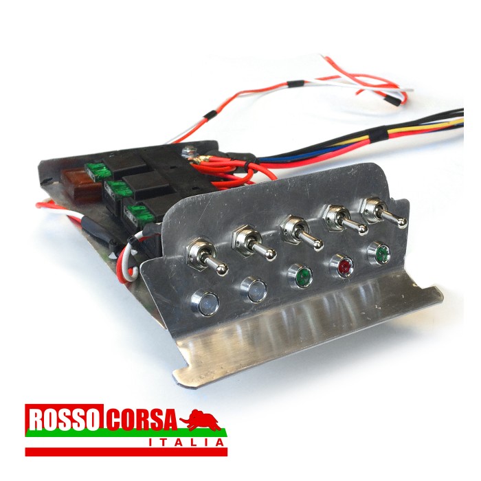 SPORT electrical system for Lancia Fulvia Copupè 2nd series. Complete with support to be housed in the central dashboard. The wiring allows you to connect an electric petrol pump, two sets of additional lights, the manual control of the engine fan. A free switch remains available for other use