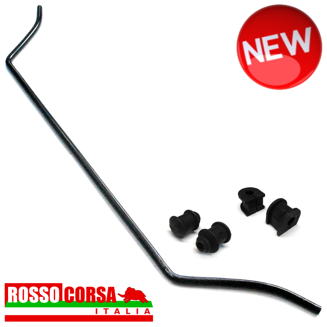 Front anti-roll bar for Lancia Fulvia, increased diameter 18mm. Elongated for the use of lower arms with negative camber. Complete kit with rigid silent-blocks and lateral silent-blocks made in hard rubber.