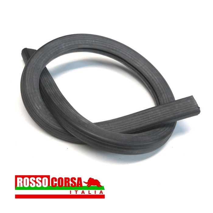 Guarnizione in gomma con anima in metallo, profilo a “U” rigata. Finitura passaruota nel vano bagagliaio Lancia Fulvia Coupè, lunghezza 60cm.