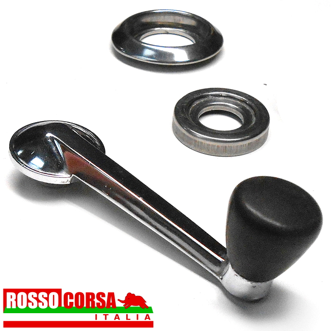 Lancia Fulvia 1st series door window handle. Complete with external rosette and internal washer