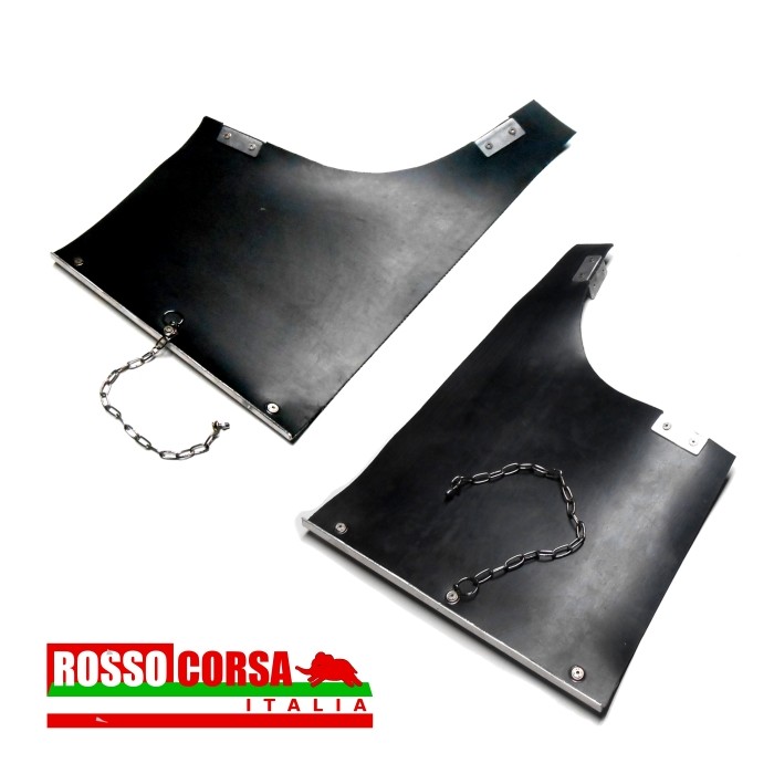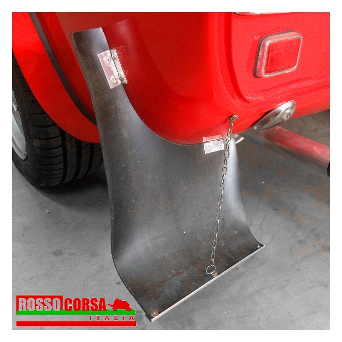 Pair of splash guards for Lancia Fulvia Gr.4, complete with fixing brackets and support chain