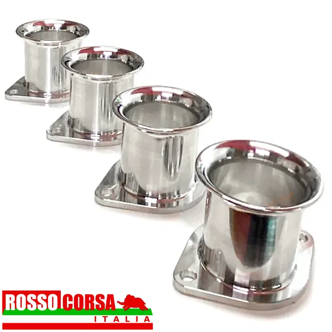 Ram pipes trumphets without mesh for Weber DCOE 40 or Dellorto DHLA 40 carburettors. Made of aluminium. Total height of the air horn 50 mm.
