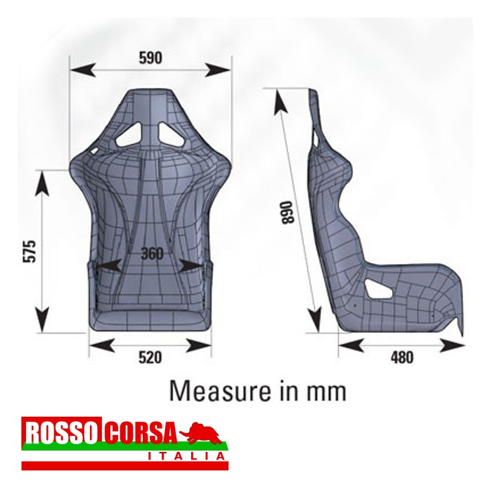Fibreglass shell seat, gel-coated. With 5 harness slots, and those of the shoulder large. Upholstered in velour, removable back and leg cushion. Hans and HSC System compatible