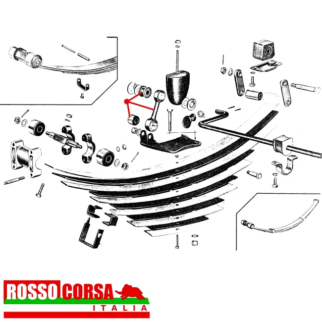 Bielletta di rinvio della barra antipolio posteriore Lancia Fulvia, completa di silent-block inferiore e superiore nuovi. Articolo di rotazione: contattateci per le modalità di spedizione del vostro pezzo usato