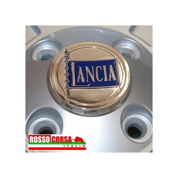 Cerchio in alluminio 6×14 per Lancia Fulvia replica Cromodora CD28, con canale conformato per il montaggio di pneumatici tubeless, finitura colore argento lucido, comprensivo di bulloneria e coppa centrale nichelata.
