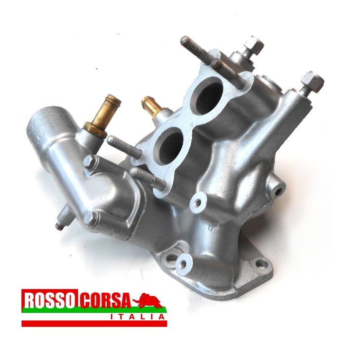 Collettore aspirazione per Lancia Fulvia Berlina 1.1 mono-carburatore, completo di bocchettone porta-termostato.