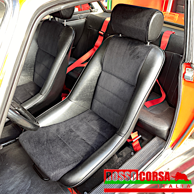 Coppia sedili Classic. Replica del sedile vintage anni ’60-’70. Sedili realizzati con telaio in acciaio. Schienale e seduta in velluto a coste e fianchi in similpelle. Poggiatesta regolabile in velluto a coste per un maggiore confort. Attacchi M8 – inferiori 270×200 mm. Peso 7,1 Kg.