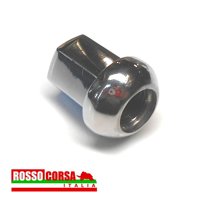 Dado ruota cieco in alluminio cromato, chiave da 19 sede di appoggio sferica. Per Lancia Fulvia tutti i modelli con colonnette. Attenzione: per montare i cerchi Campagnolo o replica Cromodora è necessario usare il dado con sede conica