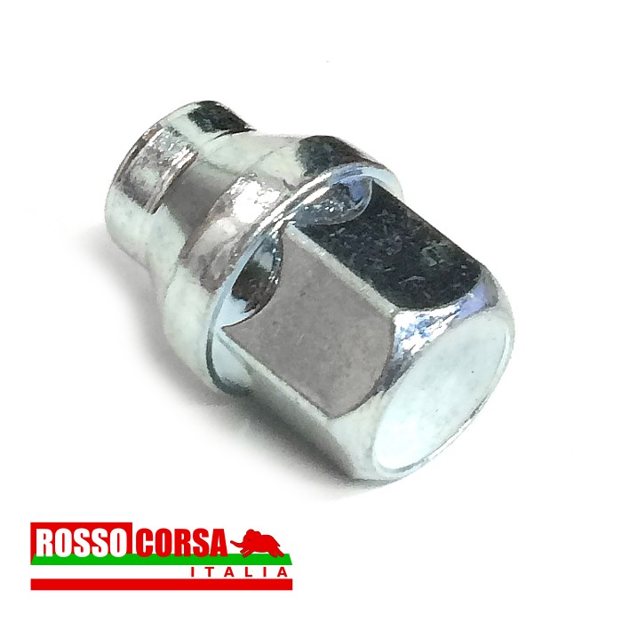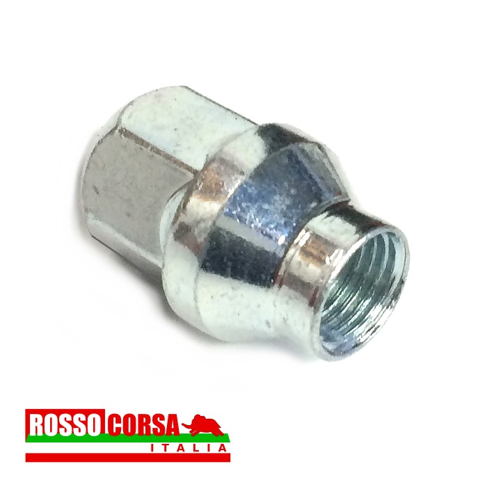 Dado ruota cieco in acciaio zincato, chiave da 19 con sede di appoggio conica. Per il fissaggio di cerchi in lega Campagnolo su Lancia Fulvia