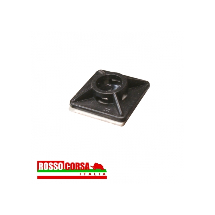 Fermo per fissaggio impianto elettrico o tubazioni leggere. Fissaggio del fermo con biadesivo o vite. Fissaggio della parte al fermo con fascette di plastica