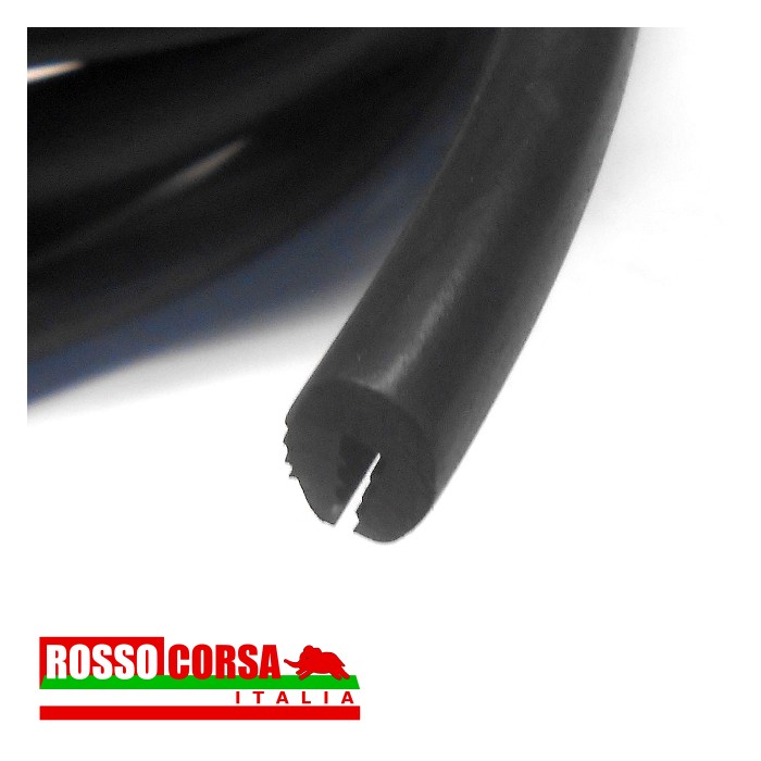 Guarnizione gomma con profilo a oliva per montaggio parafanghini Gr.3 e Gr.4 Lancia Fulvia. Dimensioni 11×14 taglio 2mm.