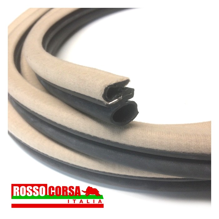Guarnizione gomma e velluto beige del vano porta posteriore della Lancia Fulvia Berlina.