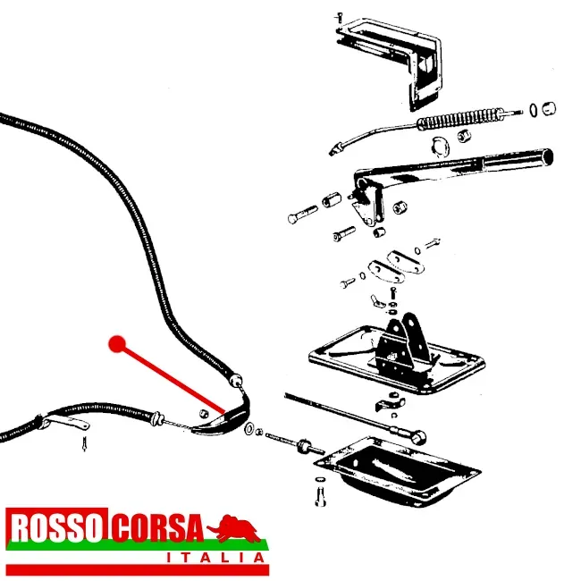 Guida fissata al tirante di azionamento del cavo freno a mano per Lancia Fulvia Coupè 2°serie. Usato ricondizionato