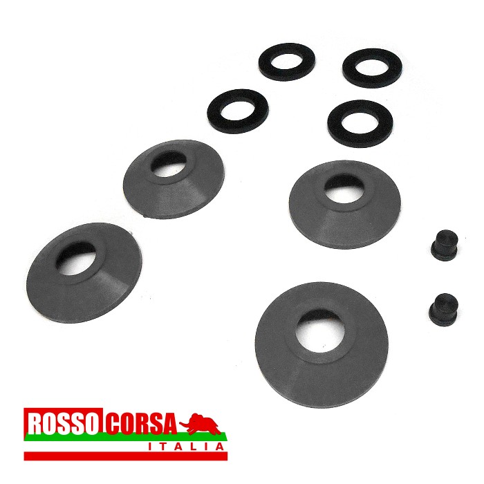 Kit guarnizioni per la revisione delle pinze posteriori di tutte le Lancia Fulvia 1°serie con impianto frenante Dunlop.. Diametro pistoncini 35 mm. Il kit comprende le guarnizioni necessarie per la revisione di due pinze freno