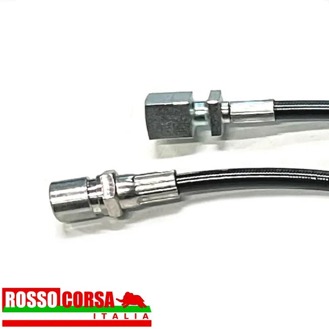 Kit tubazioni freni rinforzate aeronautiche per tutte le Lancia Fulvia 2° serie con impianto Girling Duplex (doppi tubi freni anteriori). Attenzione i raccordi sono grimpati sul tubo, non assemblati. Questo procedimento garantisce la tenuta assoluta del tubo freno. I nostri tubi freno si raccordano direttamente sulle pinze e vanno a sostituire anche i due tubi corti rigidi in ferro collegati alle pinze freno.
