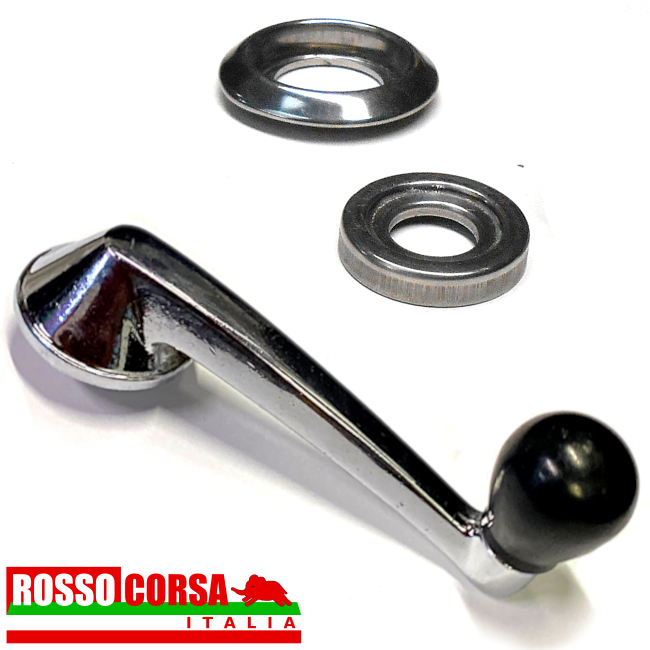 Maniglia alzavetro porta Lancia Fulvia Berlina. Completa di rosone esterno e rondella interna