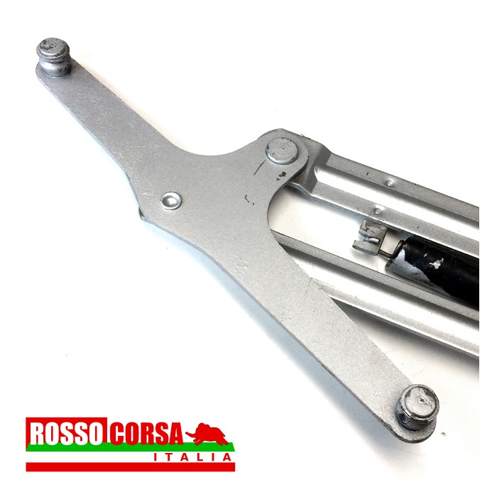 Meccanismo alzavetro della porta destra per Lancia Fulvia Coupè 2°serie. Si può montare solo abbinato alla guida vetro in alluminio. Usato, revisionato