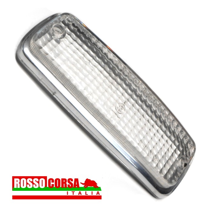 Plastica trasparente del fanalino freccia anteriore sinistro per Lancia Fulvia Berlina 2°serie. Colore bianco