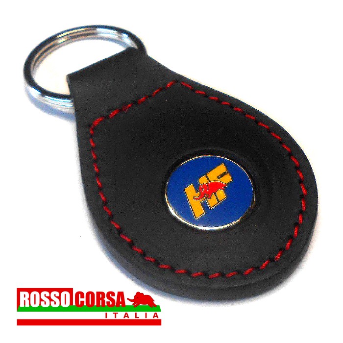 Portachiavi in vera pelle colore nero con logo HF smaltato