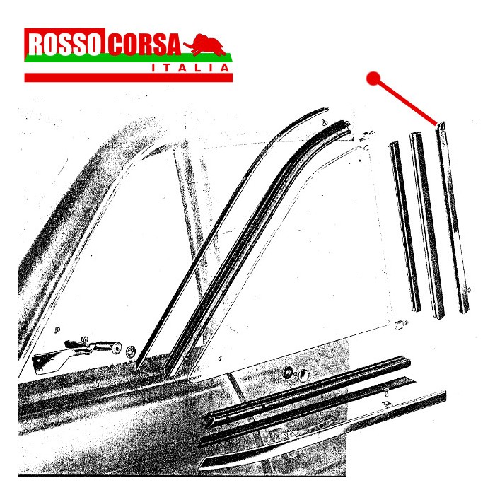 Profilo inox a fissaggio del vetro voletto laterale sinistro della Lancia Fulvia Coupè 1°serie, escluso 1.3 Rallye S e 1.6 HF 1°serie.