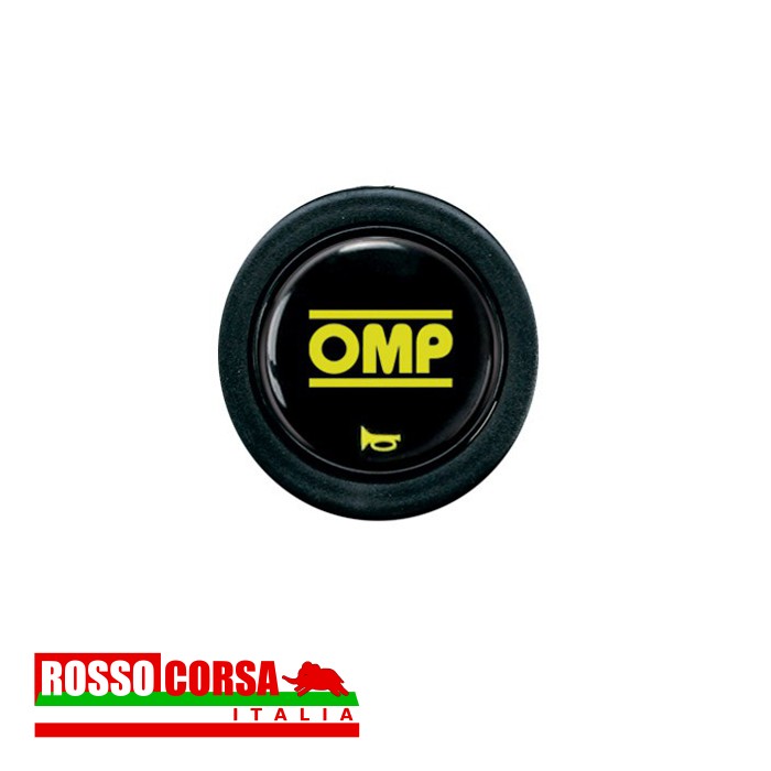 Pulsante clacson completo di supporto ed emblema OMP. Colore: nero. Diametro: 40mm.