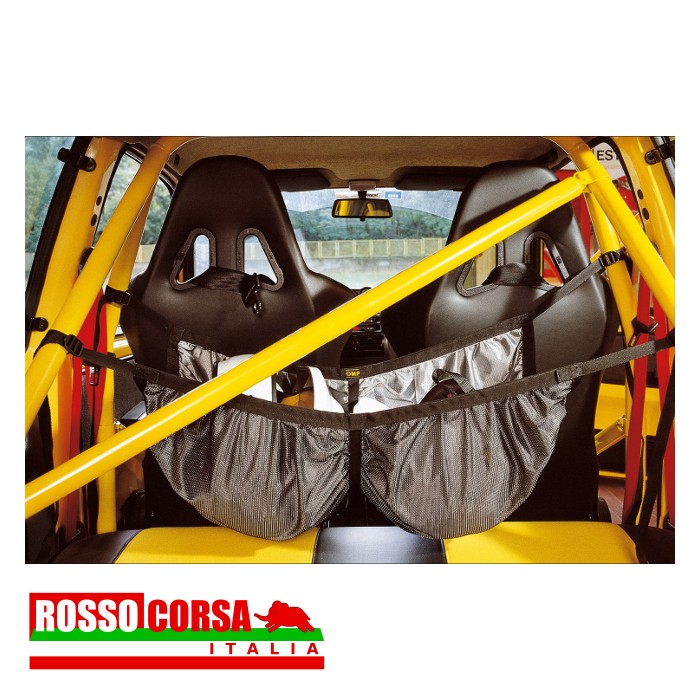Rete porta casco realizzata in tessuto poliestere, e adattabile ad ogni vettura, puo contenere due caschi. Colore: grigio/nero