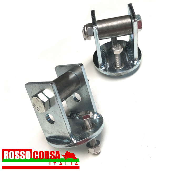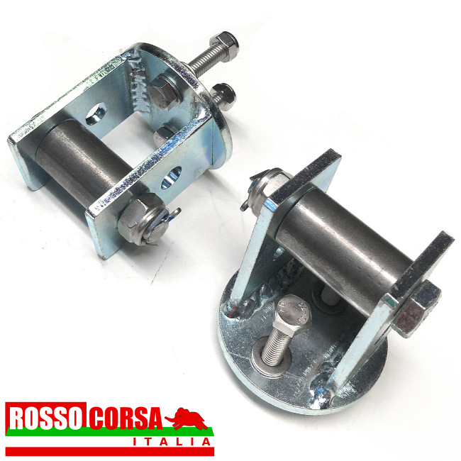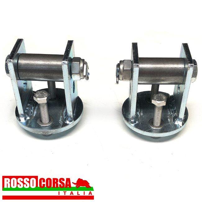 Rulli balestra anteriore per Lancia Fulvia 2°serie, con la traversa in cui alloggia la balestra anteriore lunga, con il tampone fine corsa situato in alto ovvero che agisce sul braccio sospensione superiore. Sostituiscono i tamponi gomma originali. Aumento della scorrevolezza e efficienza della balestra. Facilitano la regolazione dell’altezza anteriore. Con rulli in acciaio
