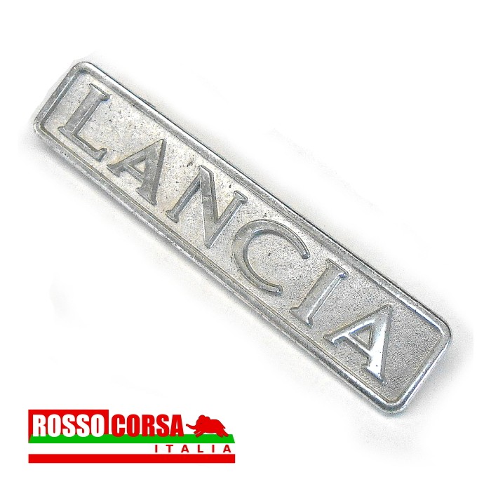 Scritta “Lancia” su alluminio cromato. Rivestimento posteriore Lancia Fulvia 2°serie