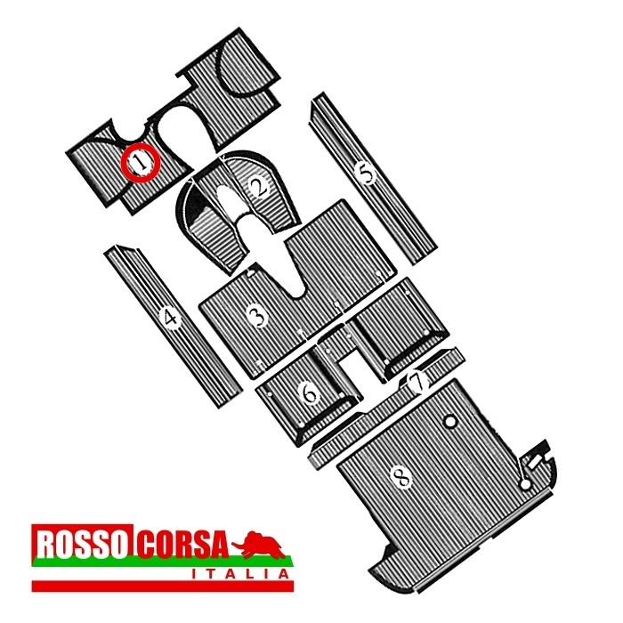 Tappeto in gomma a copertura della paratia vano motore Lancia Fulvia Coupè 2°serie. Vedi n°1 nell’immagine